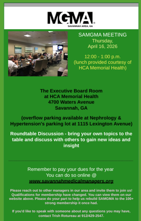 Copyright 2026 © Savannah Area Medical Group Management Association. All Rights Reserved
